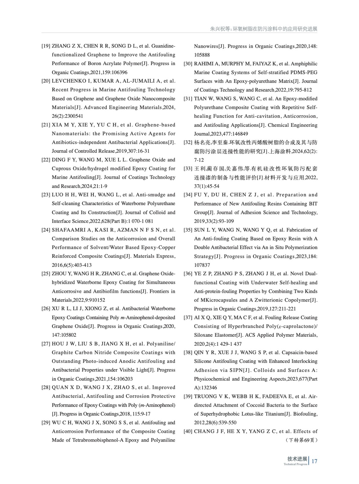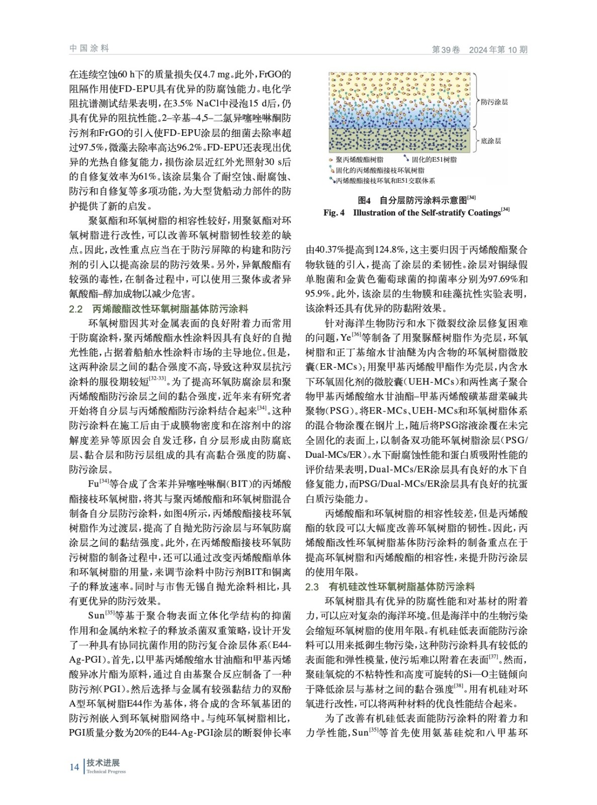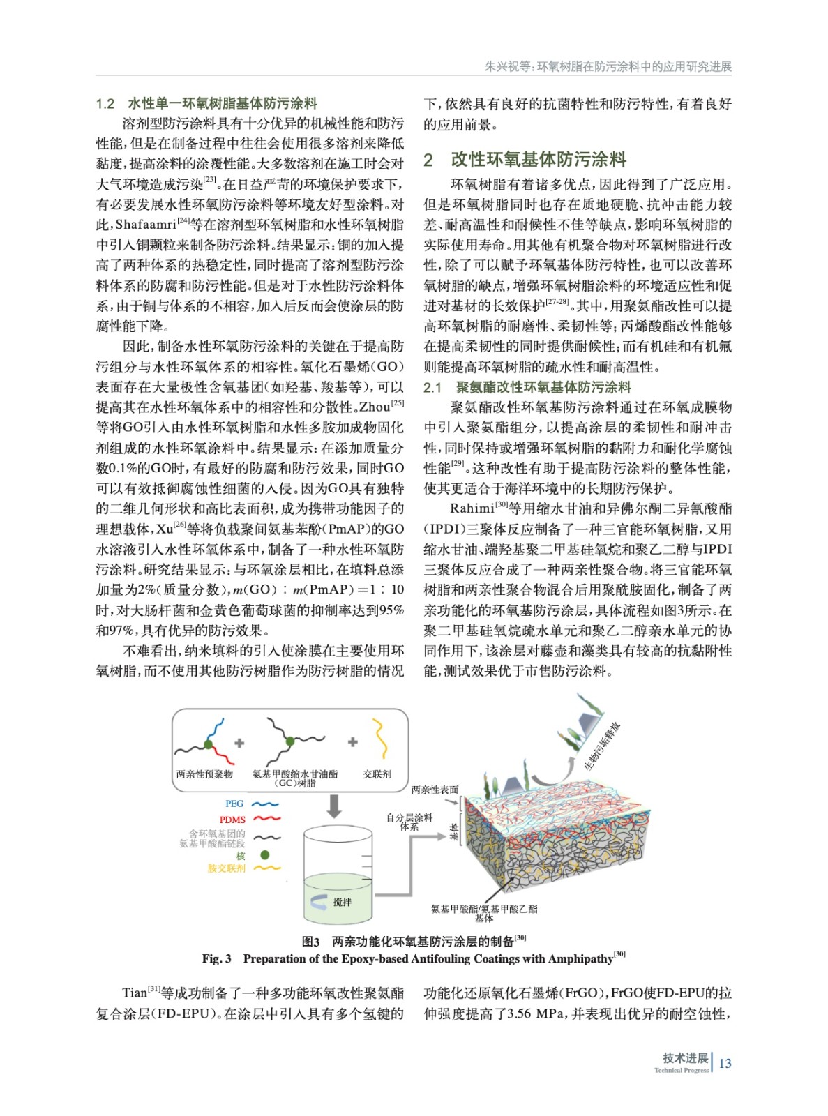 摘要:總結了近年來國內外在環氧基體防污涂料上的研究進展,重點綜述了純環氧樹脂基防污涂料和丙烯酸酯改性環氧基防污涂料的研究進展。對于單一環氧樹脂基體防污涂料來說,設計重點在于活性組分的引入;而對于改性環氧基體防污涂料而言,則更應注意環氧樹脂對防污涂料機械性能的增強。最后提出當前依然存在的問題以及對未來發展的展望。