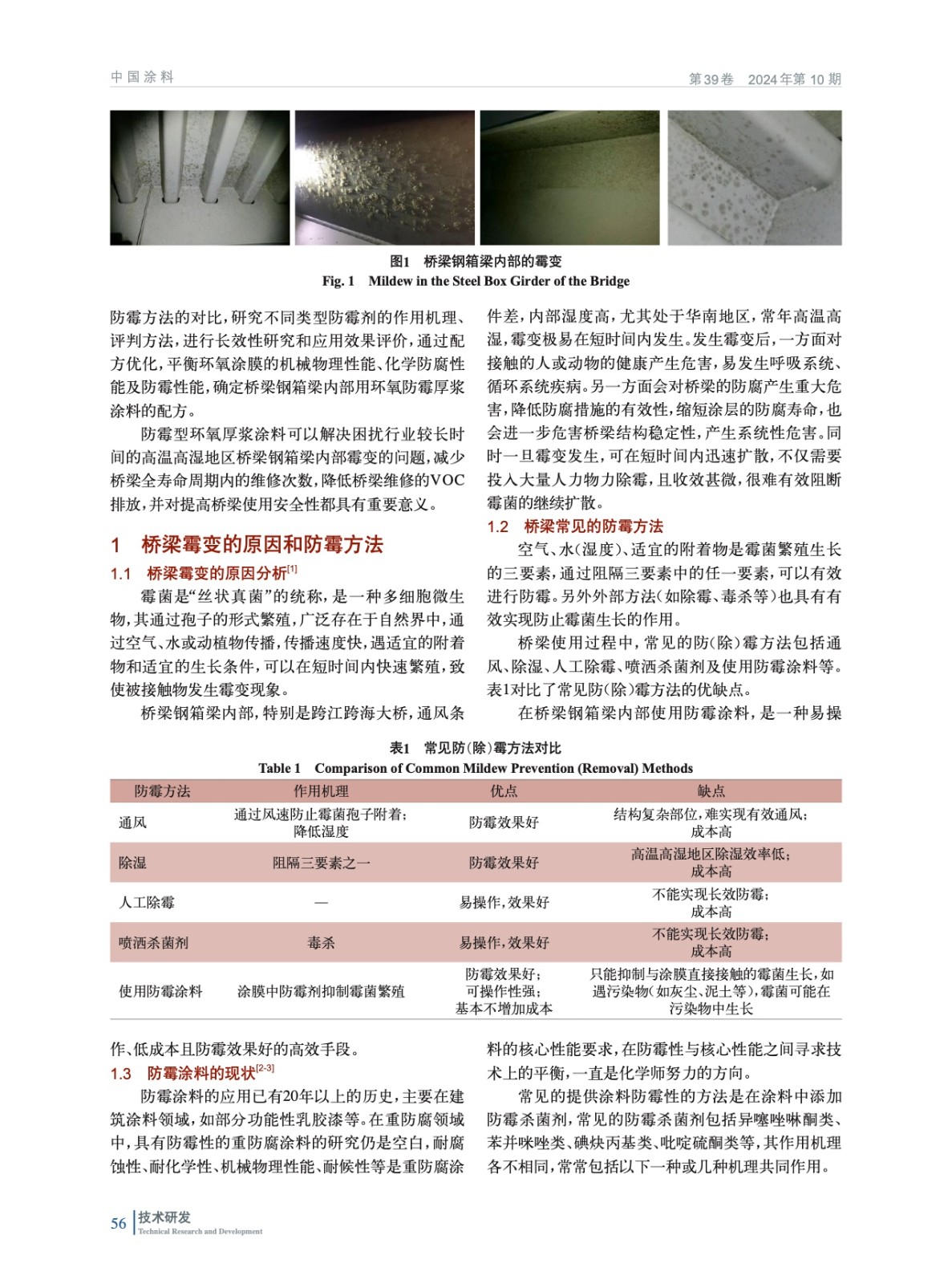 應用于橋梁鋼箱梁內部防霉涂料的研制與性能研究