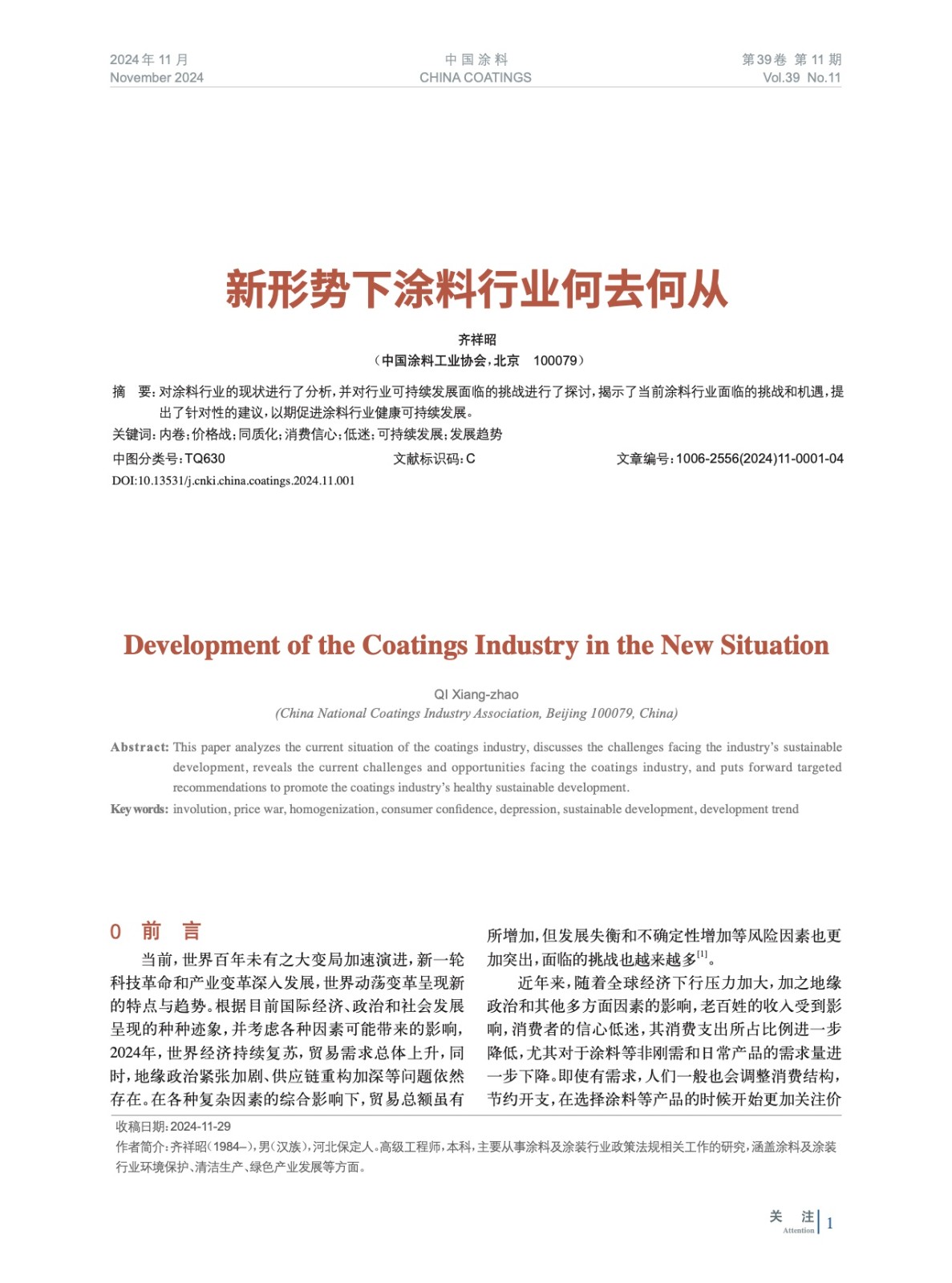 本文系作者@齊祥昭 授權中國涂料網發表,并經中國涂料網編輯,未經允許不得轉載,如需轉載請聯系chinacoatingnet@vip.163.com
