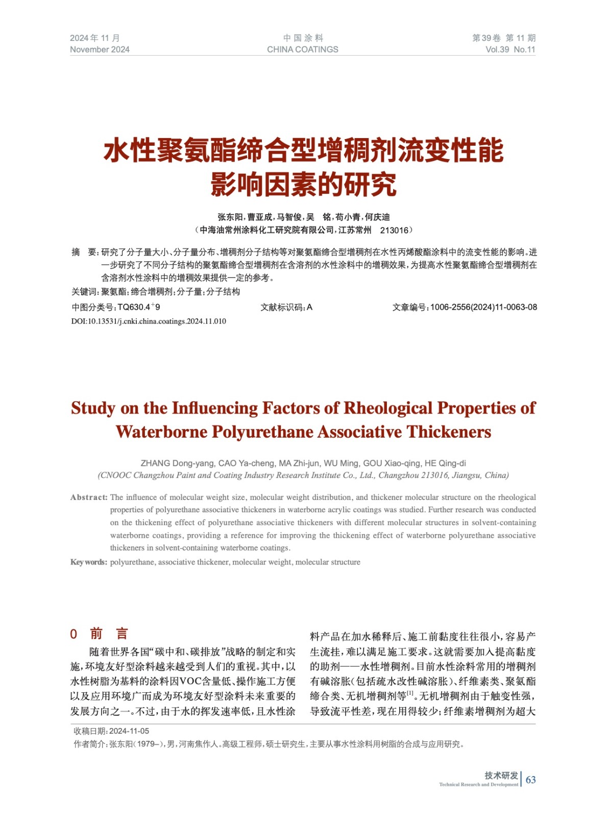 本文系作者@張東陽,曹亞成,馬智俊,吳 銘,茍小青,何慶迪 授權中國涂料網發表,并經中國涂料網編輯,未經允許不得轉載,如需轉載請聯系chinacoatingnet@vip.163.com
