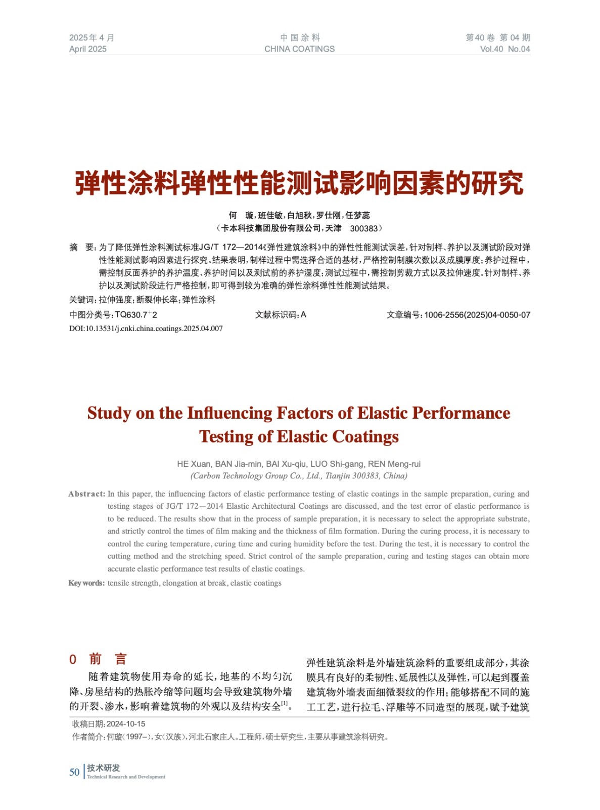 本文系作者@何 璇,班佳敏,白旭秋,羅仕剛,任夢蕊 授權中國涂料網發表,并經中國涂料網編輯,未經允許不得轉載,如需轉載請聯系chinacoatingnet@vip.163.com