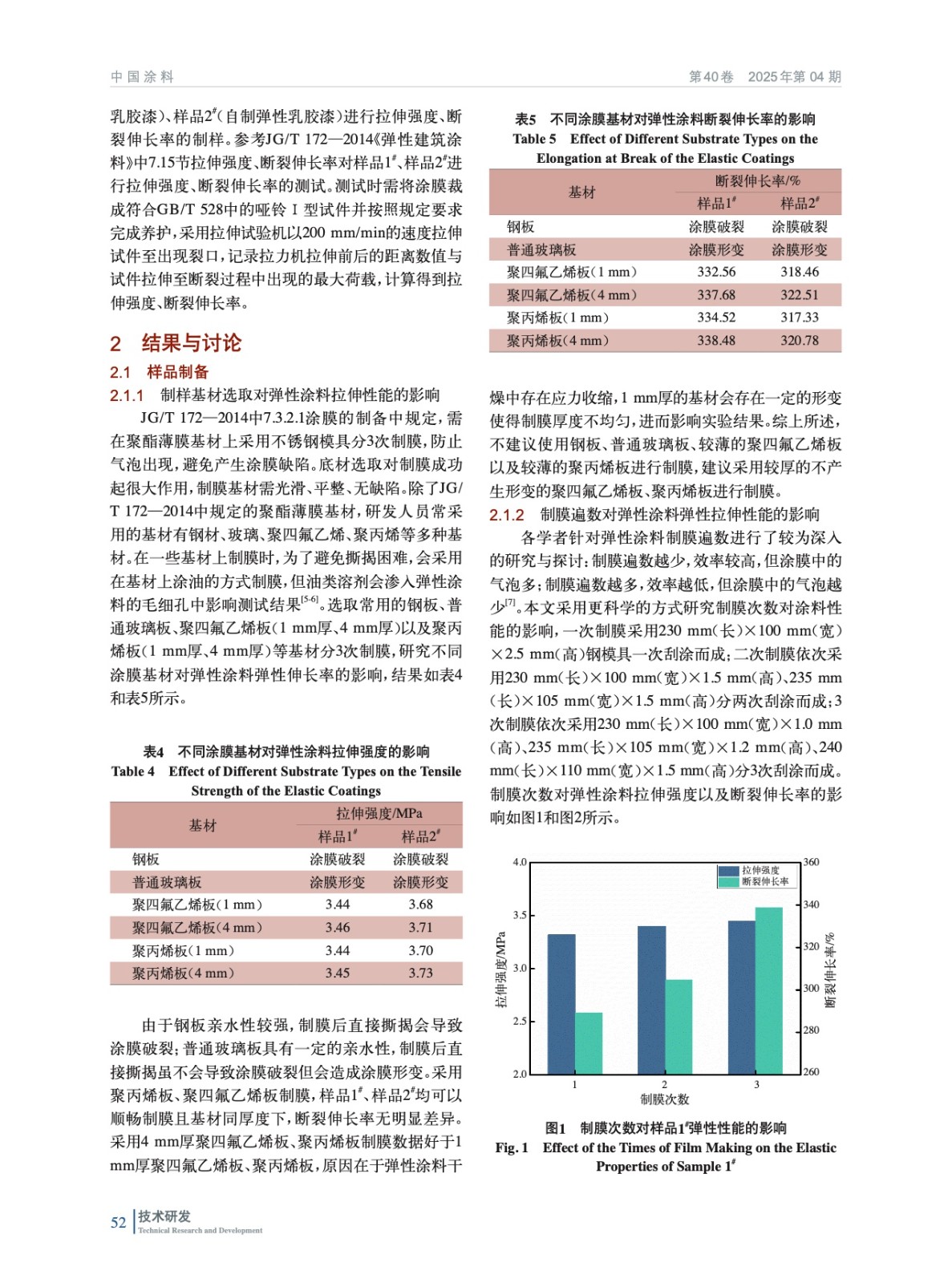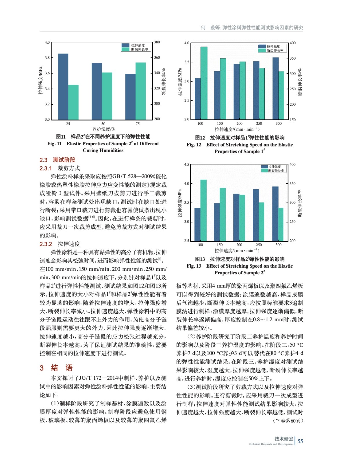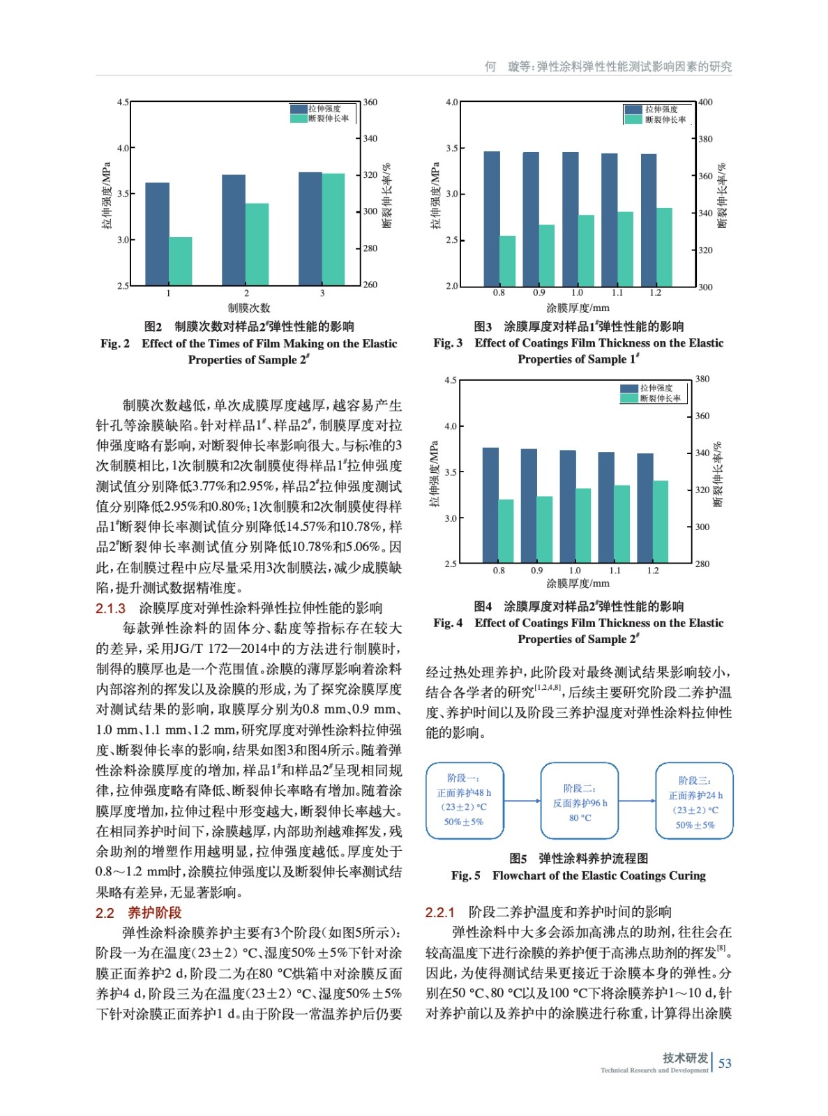 摘要:為了降低彈性涂料測試標準JG/T 172—2014《彈性建筑涂料》中的彈性性能測試誤差,針對制樣、養護以及測試階段對彈性性能測試影響因素進行探究。結果表明,制樣過程中需選擇合適的基材,嚴格控制制膜次數以及成膜厚度;養護過程中,需控制反面養護的養護溫度、養護時間以及測試前的養護濕度;測試過程中,需控制剪裁方式以及拉伸速度。針對制樣、養護以及測試階段進行嚴格控制,即可得到較為準確的彈性涂料彈性性能測試結果。