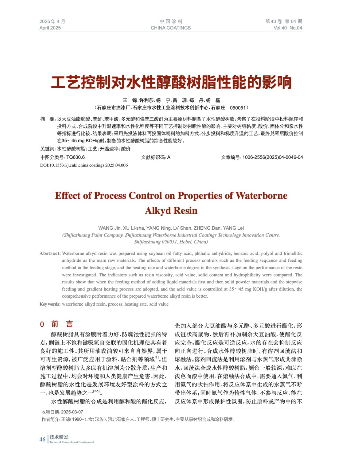 本文系作者@王 錦,許利莎,楊 寧,呂 珊,鄭 丹,楊 磊 授權中國涂料網發表,并經中國涂料網編輯,未經允許不得轉載,如需轉載請聯系chinacoatingnet@vip.163.com
