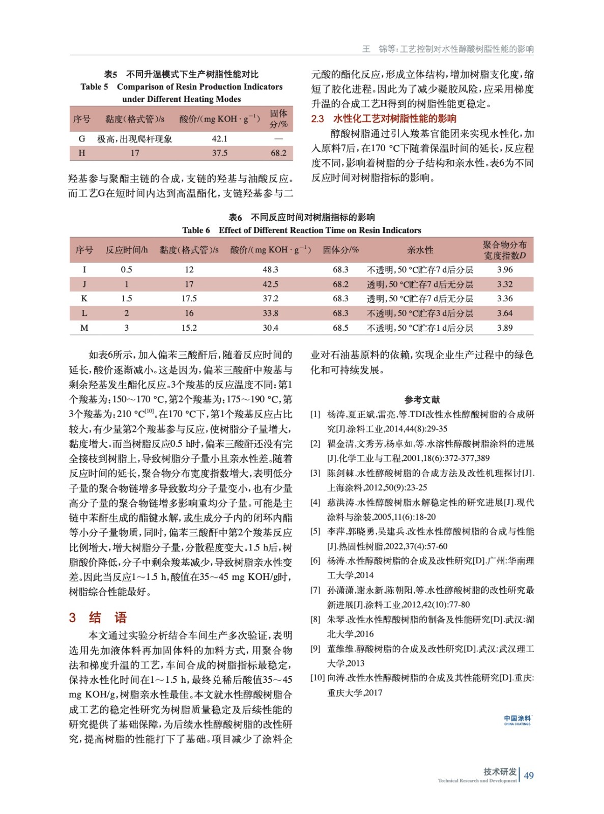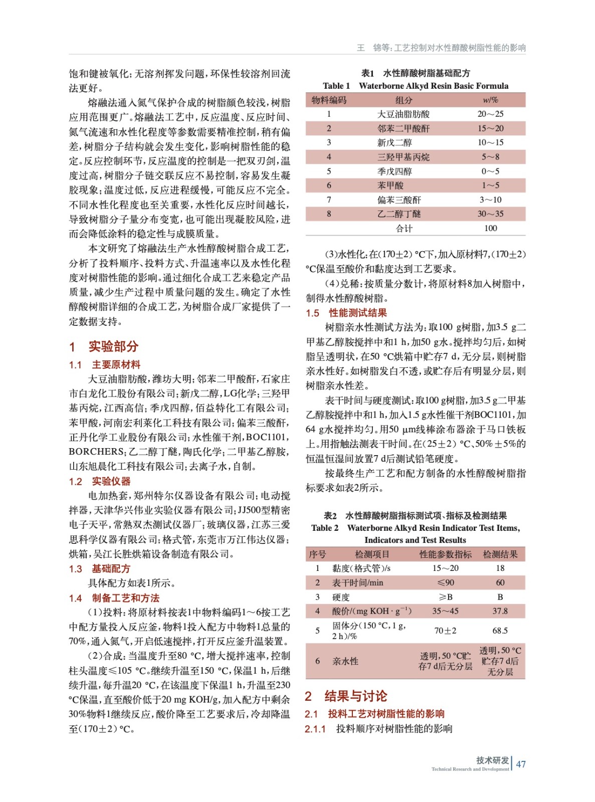 工藝控制對水性醇酸樹脂性能的影響