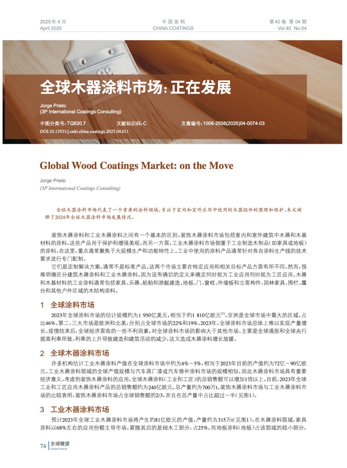 編者按:全球木器涂料市場代表了一個重要的涂料領域,專注于室內和室外應用中使用的木器組件的整理和保護。本文闡釋了2024年全球木器涂料市場發展情況。
