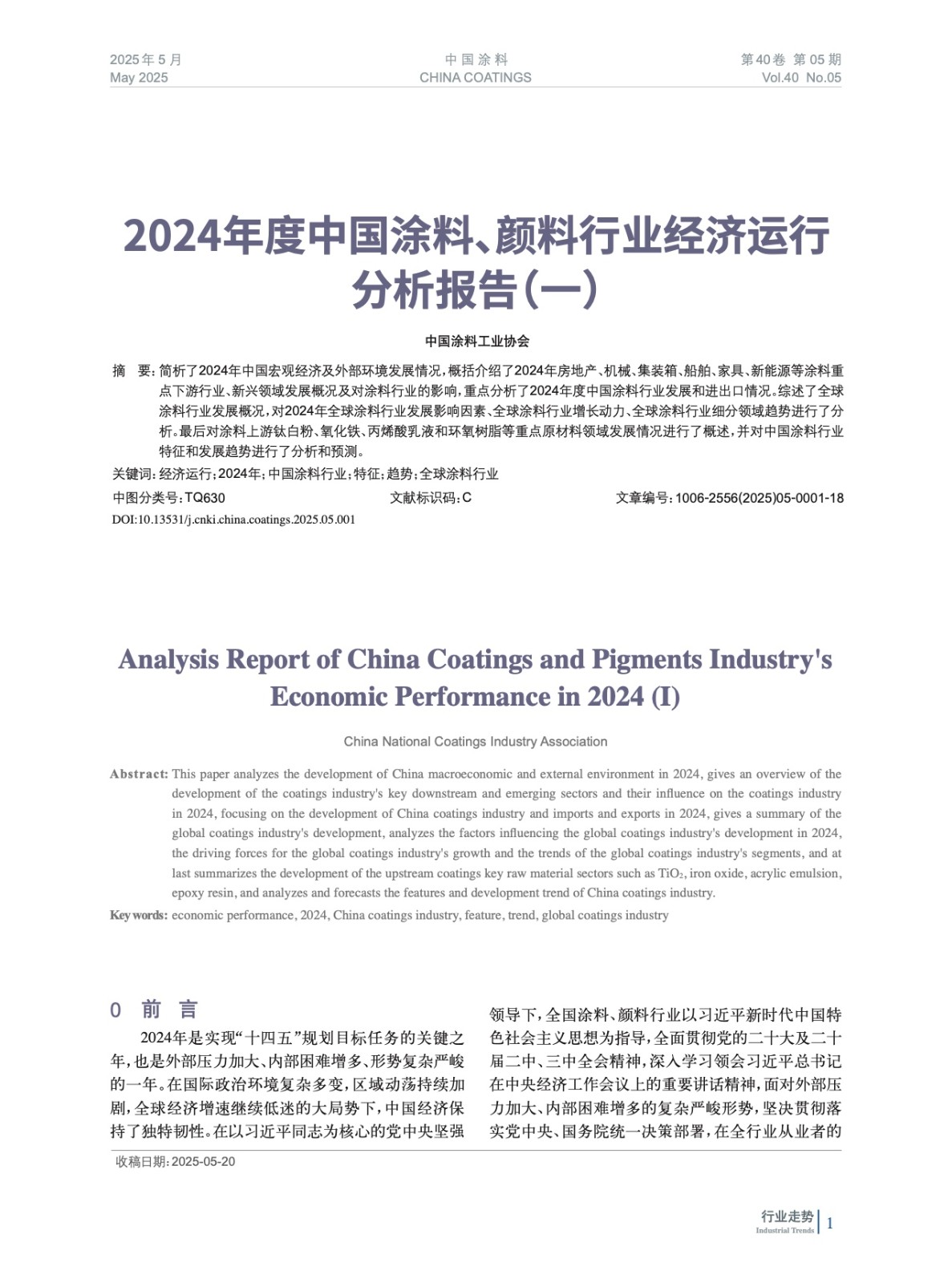 2024年度中國涂料、顏料行業(yè)經(jīng)濟(jì)運(yùn)行分析報(bào)告(一)