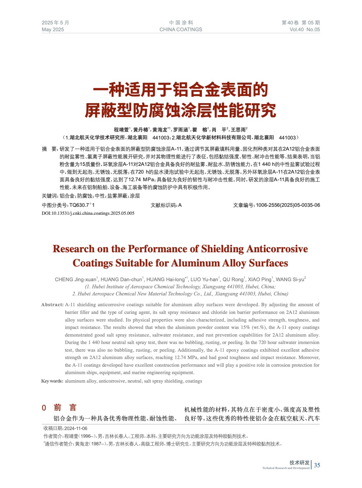 本文系作者@程靖萱,黃丹椿,黃海龍,羅雨涵,瞿 榕,肖 平,王思雨 授權中國涂料網發表,并經中國涂料網編輯,未經允許不得轉載,如需轉載請聯系chinacoatingnet@vip.163.com