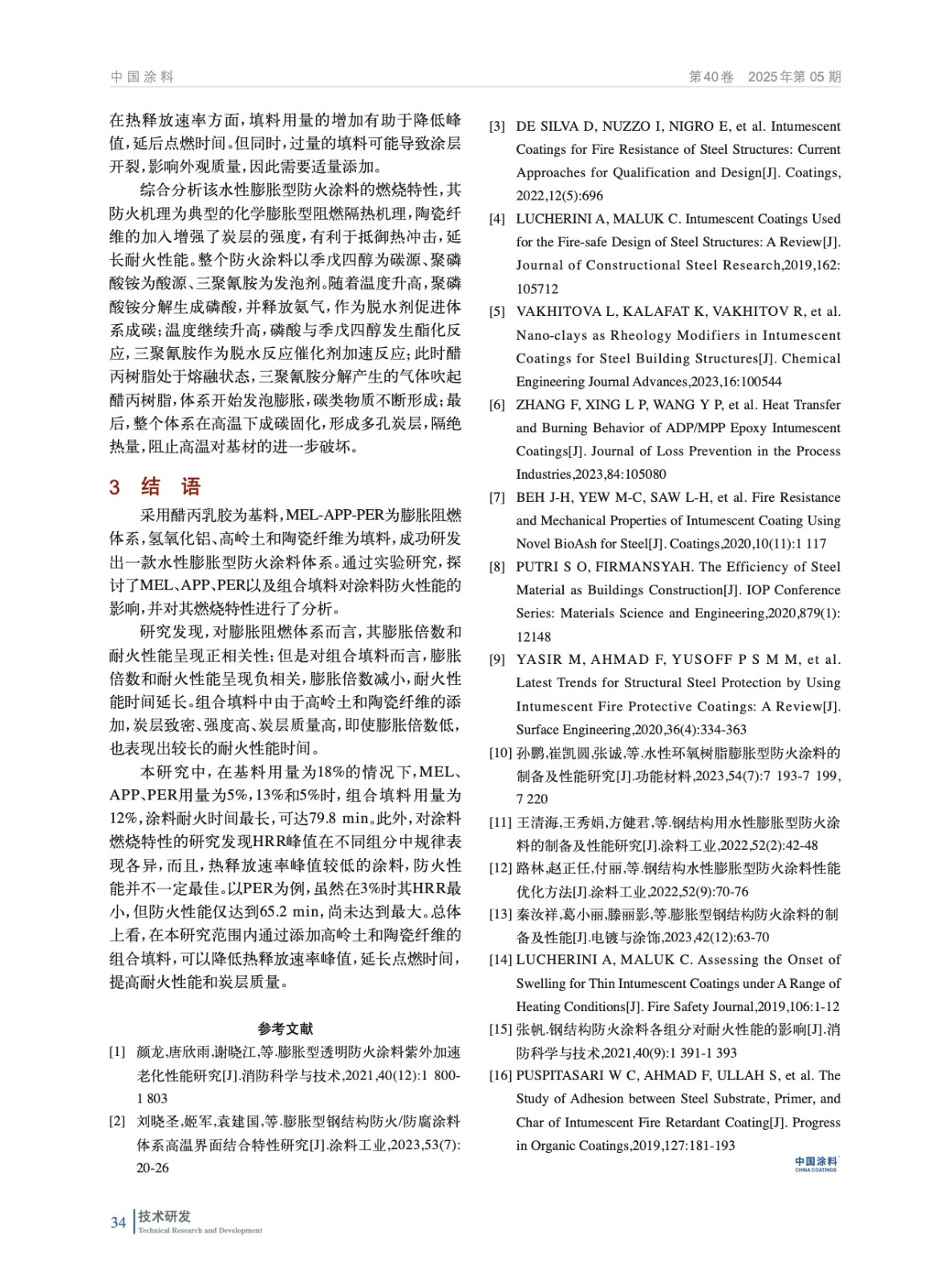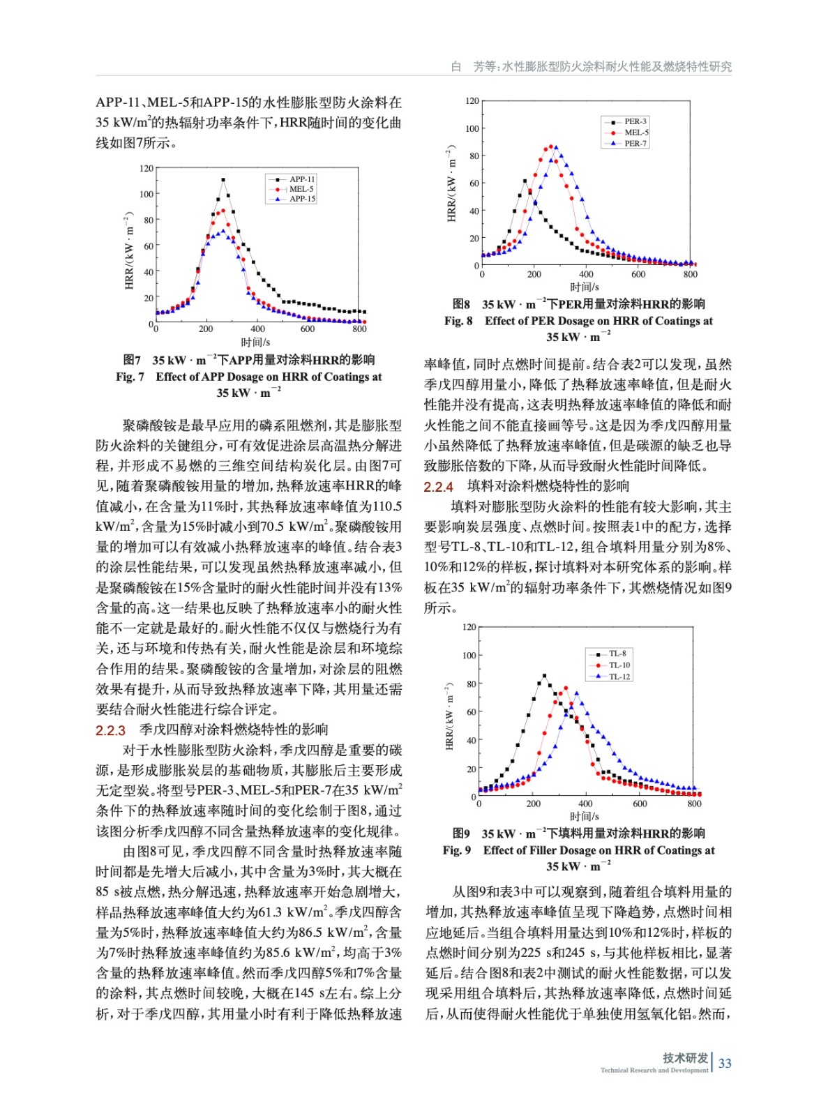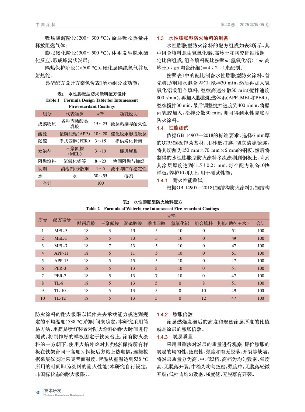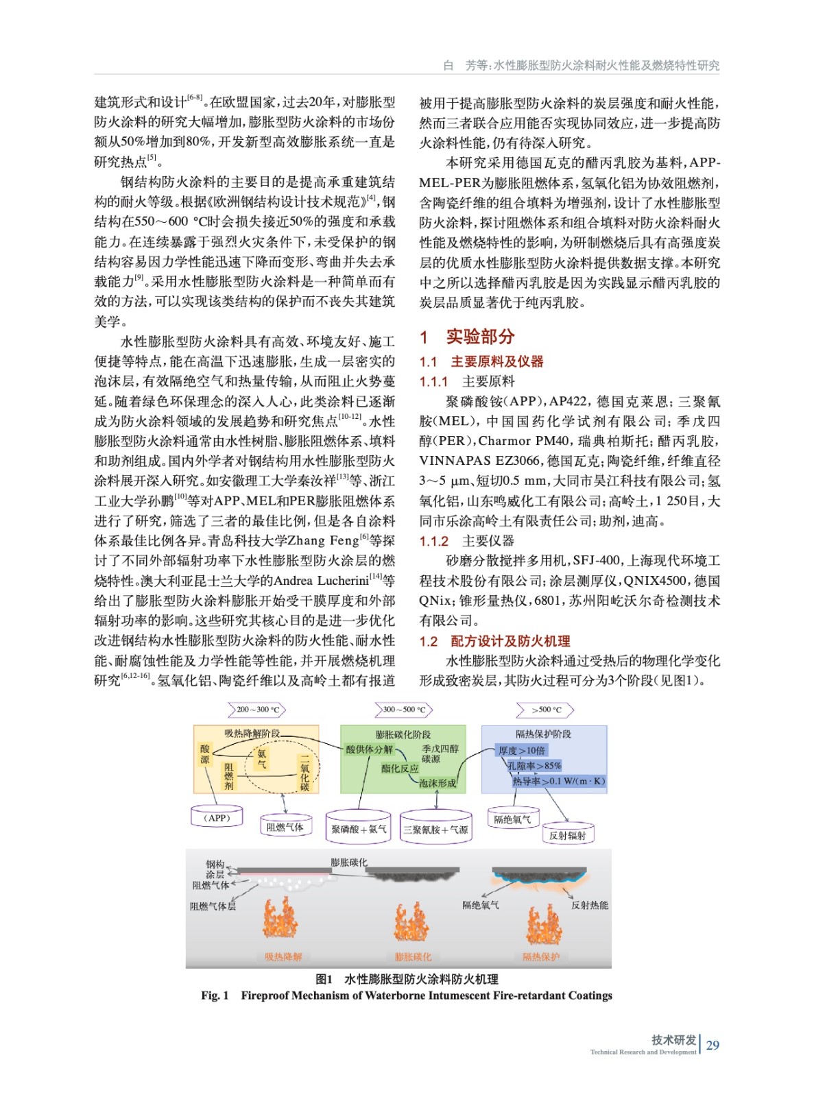 水性膨脹型防火涂料耐火性能及燃燒特性研究