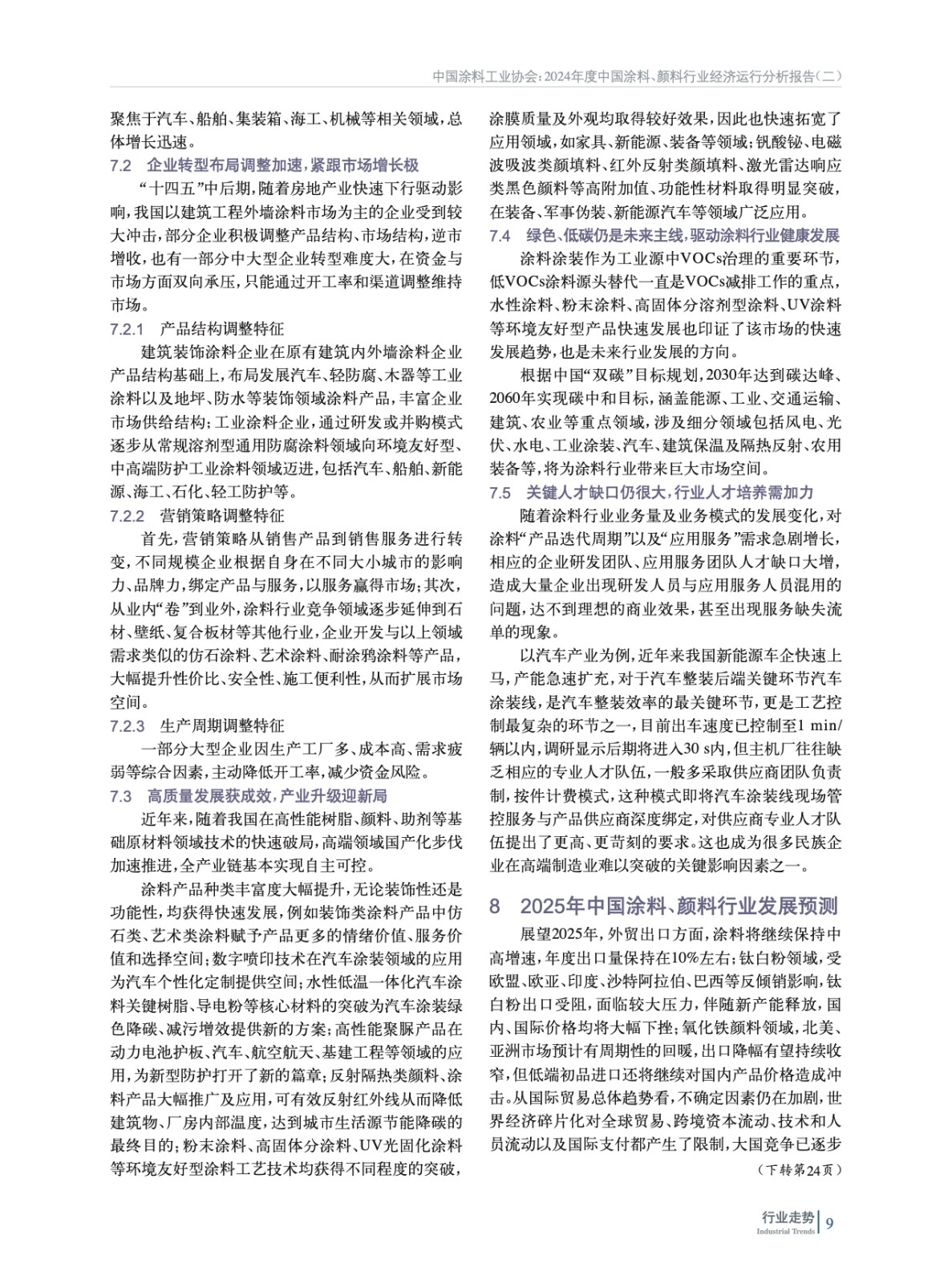2024年度中國涂料、顏料行業經濟運行分析報告(二)