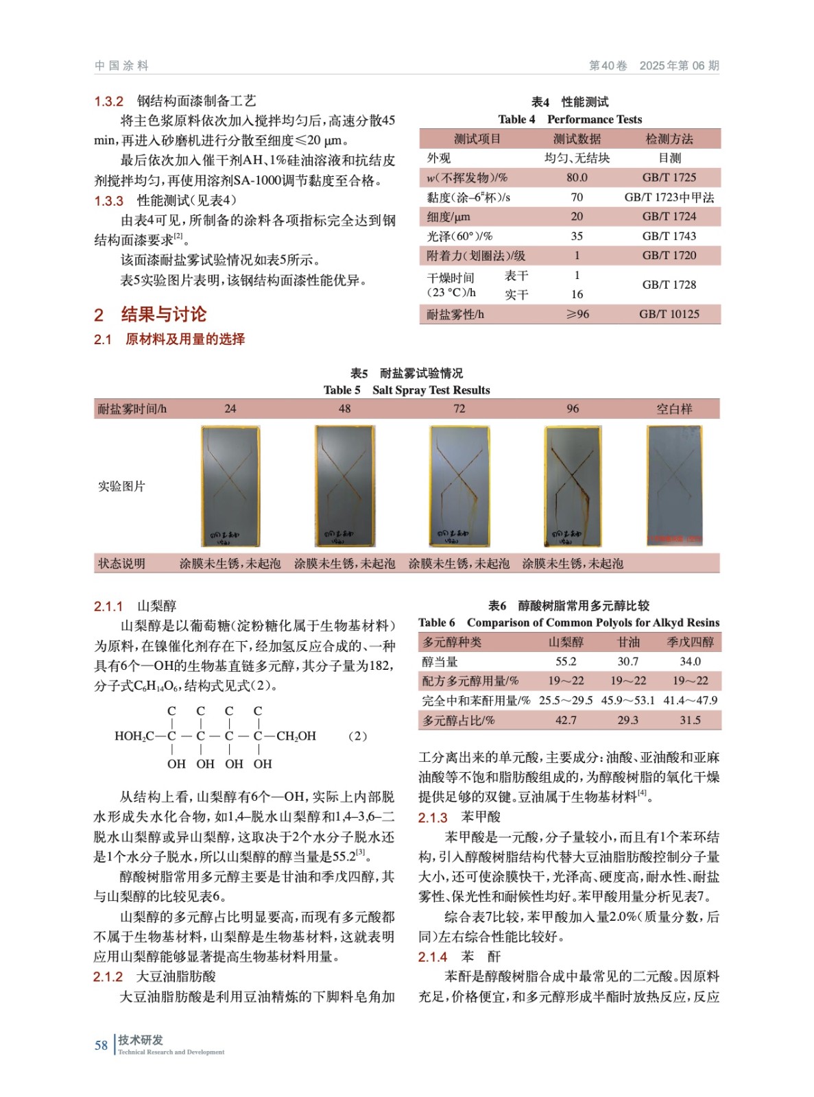 摘要:采用以山梨醇為多元醇在催化劑作用下進行酯化反應,并運用脂肪酸–高聚物法制備環境友好型醇酸樹脂。其是以植物油類衍生物和山梨醇為主要原材料,總生物基物質占比約為50%以上,制成的環境友好型樹脂可用于制備鋼結構涂料等產品,耐鹽霧能達96 h以上。結果表明:山梨醇生物基醇酸樹脂生物基物質含量高,涂膜防腐性能更優異。