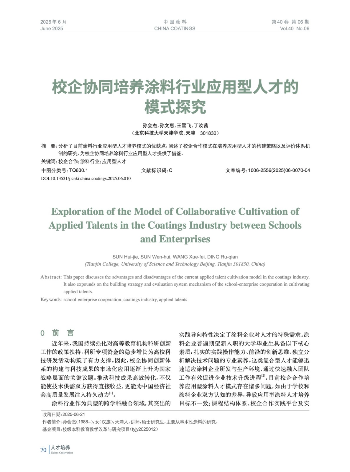 校企協(xié)同培養(yǎng)涂料行業(yè)應用型人才的模式探究
