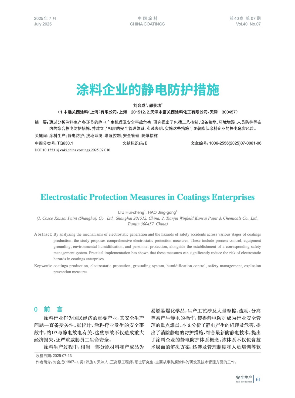 本文系作者@劉會(huì)成,郝景功 授權(quán)中國(guó)涂料網(wǎng)發(fā)表,并經(jīng)中國(guó)涂料網(wǎng)編輯,未經(jīng)允許不得轉(zhuǎn)載,如需轉(zhuǎn)載請(qǐng)聯(lián)系chinacoatingnet@vip.163.com