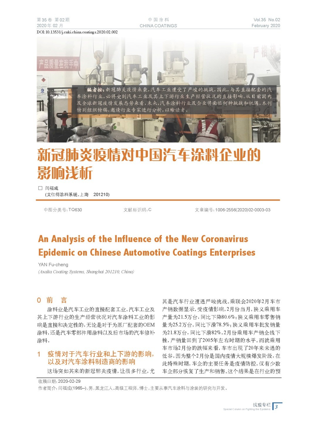 新冠肺炎疫情對中國汽車涂料企業的影響淺析