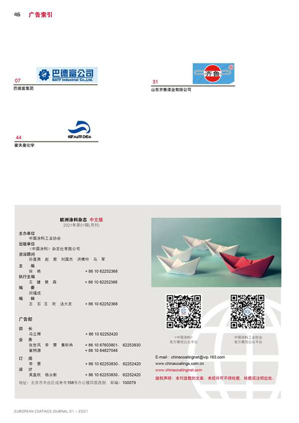 主辦:《中國涂料》雜志社有限公司 電話:010-62252368