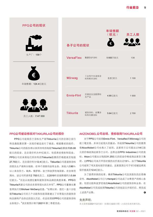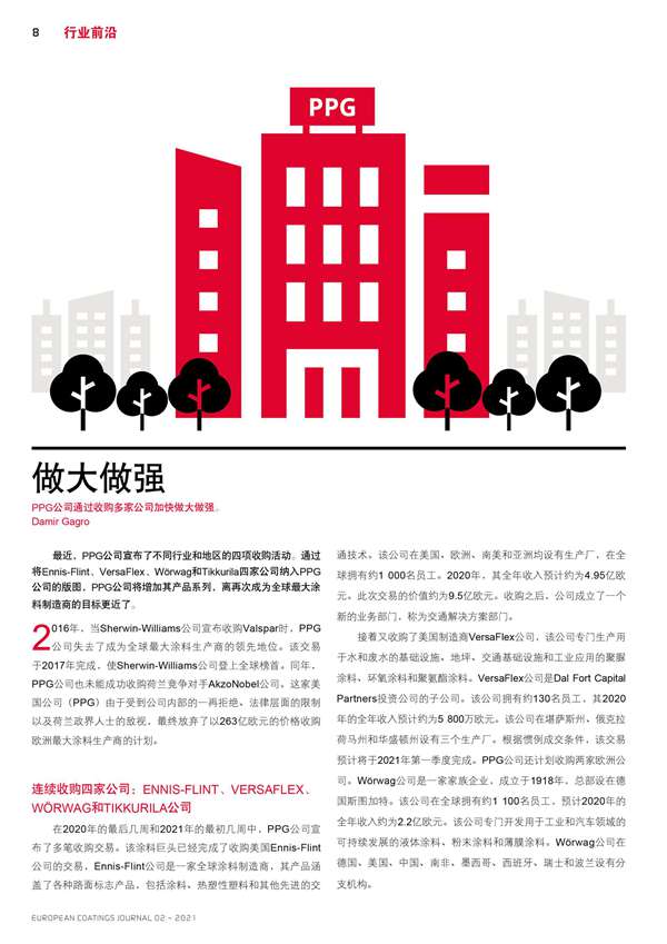 PPG公司通過收購多家公司加快做大做強(qiáng)