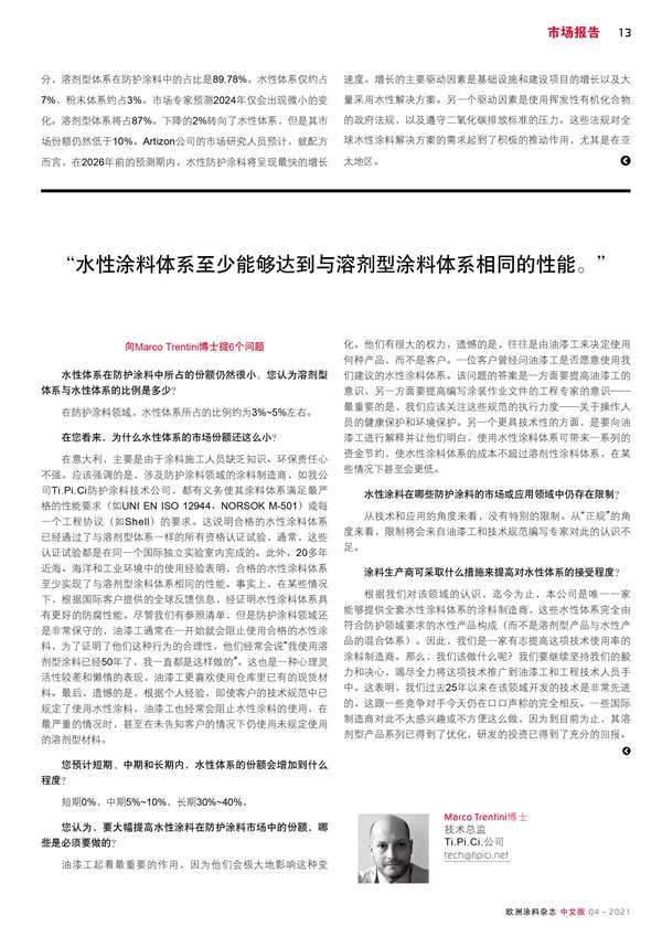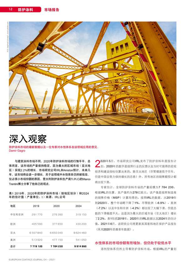 防護(hù)涂料市場(chǎng)的最新數(shù)據(jù)以及一位專家對(duì)水性體系在該領(lǐng)域應(yīng)用的意見