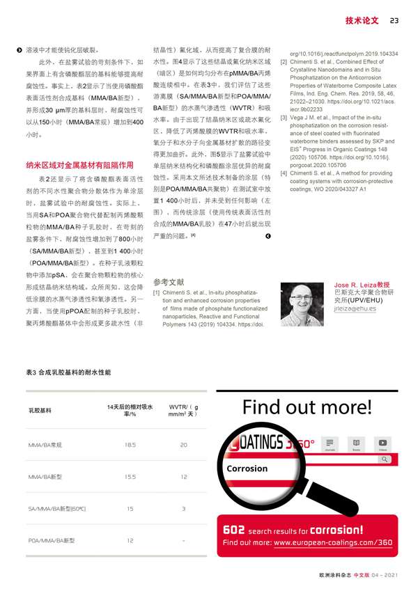 具有納米結構和經磷化的水性基料可以改善防腐性