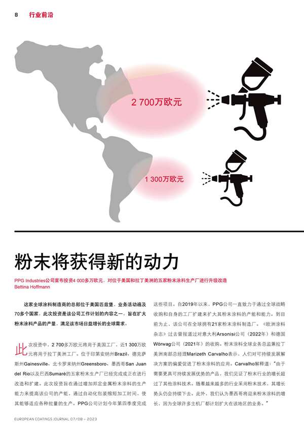 PPG Industries公司宣布投資,對五家粉末涂料生產(chǎn)廠進行升級改造
