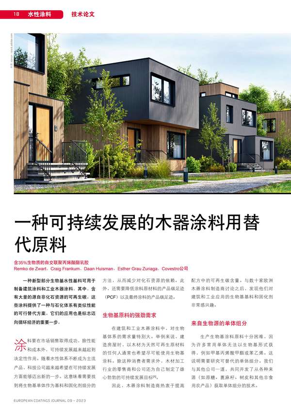 含35%生物質(zhì)的自交聯(lián)聚丙烯酸酯乳膠