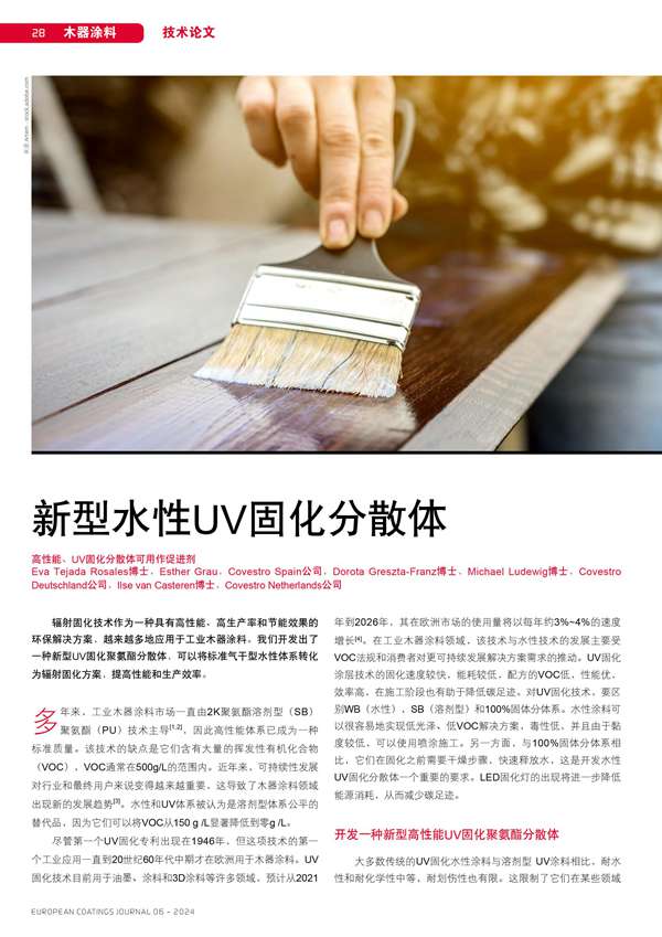 新型水性UV固化分散體