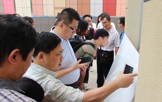 上午,《規程》編委會的專家們首先在晨陽水漆副總裁花東栓、技術中心主任董立志、質量總監肖銘等領導的陪同下參觀了成品庫房、生產車間、施工樣板,并詢問了水漆的相關技術與應用。經過解答,專家對晨陽水漆的技術質量和環保性給予了高度贊許。