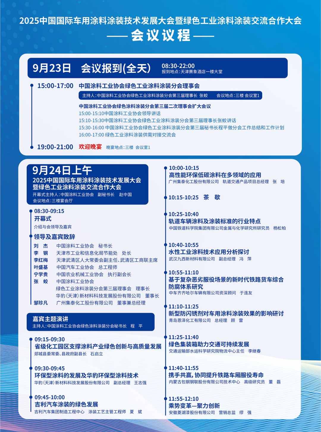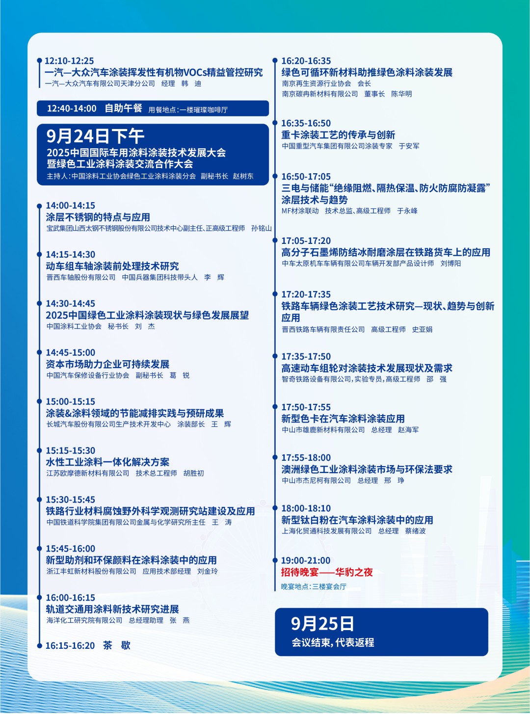 9月24日全天 2025中國(guó)國(guó)際車用涂料涂裝技術(shù)發(fā)展大會(huì)暨綠色工業(yè)涂料涂裝交流合作大會(huì)