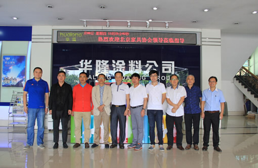 2015年10月8日,北京家具行業協會會長何法澗一行蒞臨華隆涂料集團,考察華隆油改水綜合解決方案,公司董事長麥全旺、總經理麥宗毅、總工楊筱秋等領導熱情接待并陪同參觀。