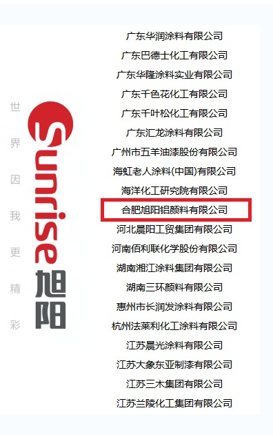 本次旭陽榮獲“中國涂料工業百年百強企業” 稱號,是上下游合作伙伴們一直以來對旭陽關心和支持的結果!旭陽人將會借此契機,繼續努力拼搏,為客戶提供質優價廉的鋁銀漿系列產品,為中國的涂料事業貢獻力量,打造中國鋁顏料的民族品牌!