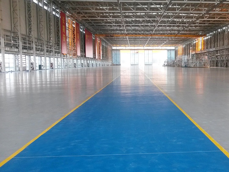 在中國(guó)商飛公司新建成的總裝制造中心浦東基地廠房?jī)?nèi),大飛機(jī)在有序組裝中,總裝廠房鋪裝完畢的秀珀環(huán)氧彩砂地坪,也在靜靜等待著它的使命。當(dāng)國(guó)產(chǎn)大飛機(jī)C919正式下線時(shí),藍(lán)灰色的秀珀地坪色帶陪伴著C919,正式開(kāi)啟了全國(guó)人民翹首期盼的夢(mèng)想起航。此次能參與國(guó)產(chǎn)大飛機(jī)C919涂裝的建設(shè)過(guò)程,也標(biāo)志著秀珀產(chǎn)品和技術(shù)進(jìn)一步得到國(guó)家重點(diǎn)項(xiàng)目的認(rèn)可和信任。