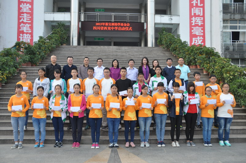 10月19日,2015年嘉寶莉助學(xué)啟動(dòng)儀式在四川省西充中學(xué)拉開(kāi)序幕。馮浪等來(lái)自西充縣轄19個(gè)鄉(xiāng)鎮(zhèn)的25名高一優(yōu)秀貧困學(xué)子獲得了每人2000元的資助,并將連續(xù)獲得高中三年的資助。這也是嘉寶莉助學(xué)點(diǎn)首次落戶第一屆中央人民政府副主席、民盟創(chuàng)始人張瀾先生的故里。