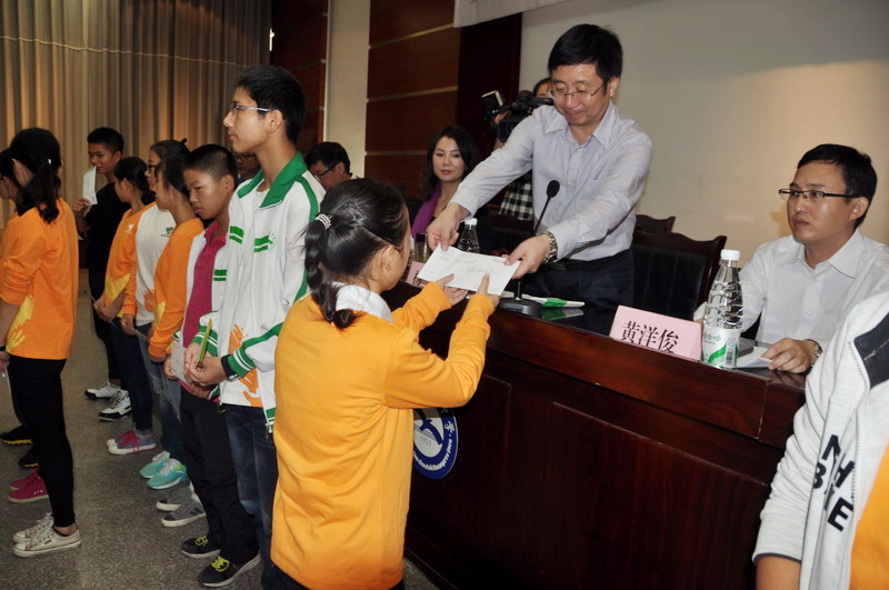 集團(tuán)新聞傳播部經(jīng)理黃洋俊代表助學(xué)基金會(huì)在儀式上發(fā)言。他說(shuō),西充是生養(yǎng)他的家鄉(xiāng),這次能促成嘉寶莉助學(xué)落戶西充,首先,要感謝嘉寶莉集團(tuán)創(chuàng)始人仇啟明,因?yàn)槌鹂偟膼?ài)心和對(duì)祖國(guó)教育的支持,才有了西充中學(xué)的助學(xué)活動(dòng)。其次,要感謝西充中學(xué)老師對(duì)教育事業(yè)的貢獻(xiàn)。西充中學(xué)1923年創(chuàng)立,現(xiàn)為四川省重點(diǎn)中學(xué),國(guó)家級(jí)示范性普通高中,每年均有200多名學(xué)子考入全國(guó)重點(diǎn)大學(xué),1000多名學(xué)生圓夢(mèng)本科大學(xué),升學(xué)率超過(guò)63%,九十多年來(lái),西充中學(xué)先后為社會(huì)培養(yǎng)出了中央組織部原副部長(zhǎng)于江震、著名磁懸浮專家李國(guó)坤、國(guó)務(wù)院特殊津貼獲得者李耀宗、成都軍區(qū)政治部副主任何平、清華大學(xué)學(xué)生何梁等一批又一批的棟梁之材,也因此才有了嘉寶莉在西充中學(xué)助學(xué)的機(jī)會(huì)。三是要感謝嘉寶莉漆南充和西充的經(jīng)銷商伙伴,因?yàn)樗麄冊(cè)谶@片市場(chǎng)上的默默耕耘,使嘉寶莉漆贏得了不錯(cuò)的市場(chǎng)口碑和占有率,才讓嘉寶莉助學(xué)基金會(huì)對(duì)這個(gè)市場(chǎng)多了一些關(guān)注和支持。最后,他感謝西充這塊生養(yǎng)他的土地,他說(shuō),能在家鄉(xiāng)設(shè)立助學(xué)點(diǎn),為家鄉(xiāng)貧困學(xué)子做一些力所能及的貢獻(xiàn),是他在嘉寶莉工作8年最大的收獲。他希望受助學(xué)子努力學(xué)習(xí)并學(xué)有所成,待將來(lái)有能力的時(shí)候,也能傳承嘉寶莉的優(yōu)良傳統(tǒng),力所能及地幫助一些值得幫助的人。