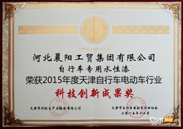 近日,天津市自行車電動車行業協(商)會五屆四次會員大會暨2015年行業科技工作會議圓滿落幕。晨陽水漆自行車專用水性漆榮獲2015年度天津自行車電動車行業“科技創新成果獎”,技術總監肖銘現場作《自行車“漆變”的強勢發軔》主題宣講。