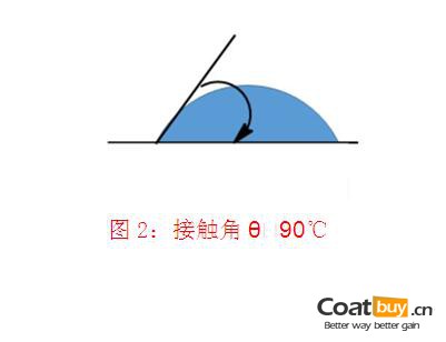 用科學術語講:這是一個“潤濕作用”問題。即固體表面(涂有涂層)和液體相接觸時,它們之間的夾角(被稱為接觸角)通常可以概括為下列三圖所示: