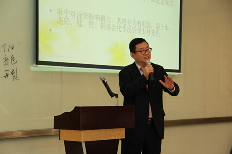 深圳長江家具有限公司姚若靈總監做了“用好水漆,從了解木材開始”的報告。在兩個小時的報告中,姚若靈總監將深奧的木材行業課程濃縮精煉,分析了木材結構與木材化學組分對水性木器涂料涂裝的影響,并提出水性木器涂料的涂裝應重點針對所涂裝木質底材的情況進行技術改進,使得參會代表們均表示受益匪淺。