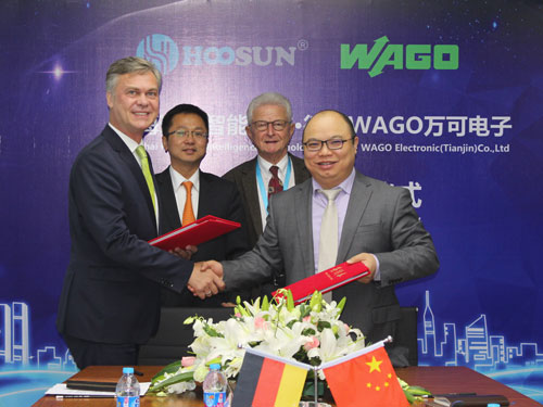 簽約儀式上,上海琥崧智能科技股份有限公司董事長李源林表示,制造業與互聯網融合發展,是全球新一輪科技革命和產業革命的核心特征,也是未來發展趨勢。不斷創新一直是琥崧堅持的戰略與目標,2016年琥崧智能布局全球精細化工市場,選擇與德國WAGO這樣優秀的企業合作,將引進WAGO全球化的智能制造網絡技術,為精細化工企業提升工廠自動化水平、產品質量水平及生產監控物聯網水平,以最新科技為精細化工企業筑就通向柔性、靈活的“未來工廠”之路,助力實現“中國制造2025”規劃目標。