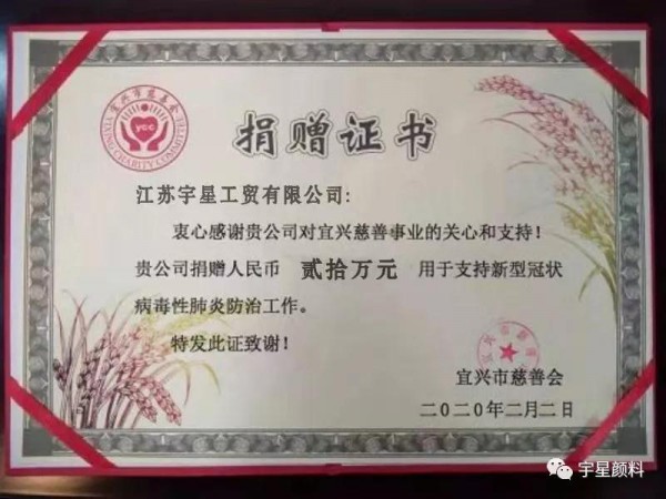 國之有難,匹夫有責(zé)。宇星主動擔(dān)當(dāng)作為,積極履行社會責(zé)任,用實(shí)際行動,為打贏疫情防控阻擊戰(zhàn),貢獻(xiàn)自己的力量。2月2日上午,宇星向宜興市慈善會定向捐款20萬用于支援武漢新型肺炎疫情抗擊,宇星表示“我們時(shí)刻關(guān)注武漢新型肺炎疫情,連日來,武漢各醫(yī)院因物資緊缺,向社會發(fā)出救援信號,所以希望盡自己的綿薄之力。”另外宇星還呼吁“希望通過我們每個(gè)人的行動,號召更多社會力量參與公益,共同控制疫情。抗“疫”有我,武漢加油!宇星向在沒有硝煙戰(zhàn)“疫”中的所有醫(yī)務(wù)工作者、人民子弟兵、普通基層工作者、共產(chǎn)黨員、志愿者、社會各界愛心人士致以崇高的敬意!祝愿抗“疫”斗爭早日取得勝利!多難興邦,武漢必勝!
