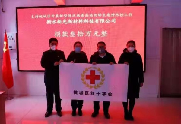 防控疫情,我們?nèi)f眾一心!新型肺炎疫情牽動(dòng)著衡水新光新材料科技有限公司干部職工的心,我們捐款,是希望給衡水以及全國(guó)的疫情防控工作出一點(diǎn)心,盡一份力,用實(shí)際行動(dòng)彰顯我們的社會(huì)責(zé)任心。
