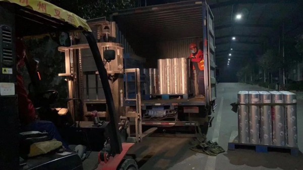 2月4日晚,咸陽東方雨虹緊急調配SBS卷材,連夜送往施工現場