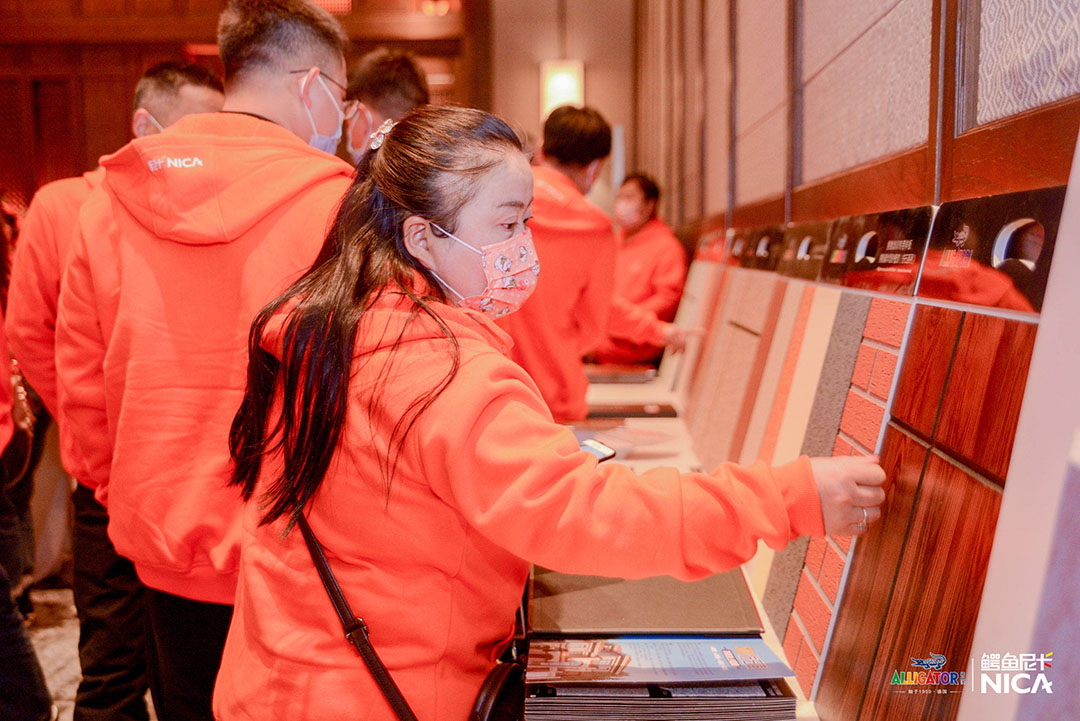 眾所周知,只有扎實做好產品研發和服務,才能更好的滿足于銷售;消費者滿意了,復購率和信譽度自然會不斷攀升。為了讓終端消費者獲得更好的墻面定制服務體驗,鱷魚尼卡施工應用負責人楊總對公司推出的包含彩妝藝術涂料新品、應用新效果、施工新工藝、配色新體系等一系列新品進行了詳細闡述,以此提升經銷商對鱷魚涂料產品的認知,幫助他們滿足消費者不同的個性需求。