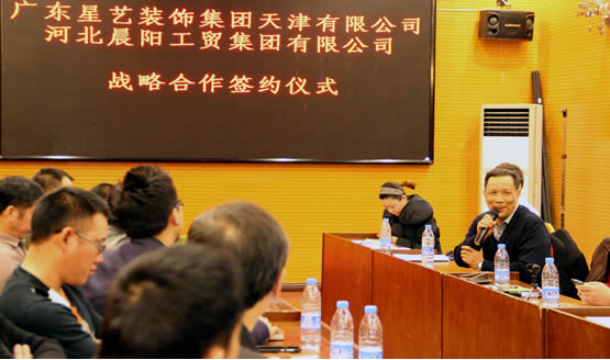 廣東星藝裝飾集團監事長冷忠在簽約儀式上發言