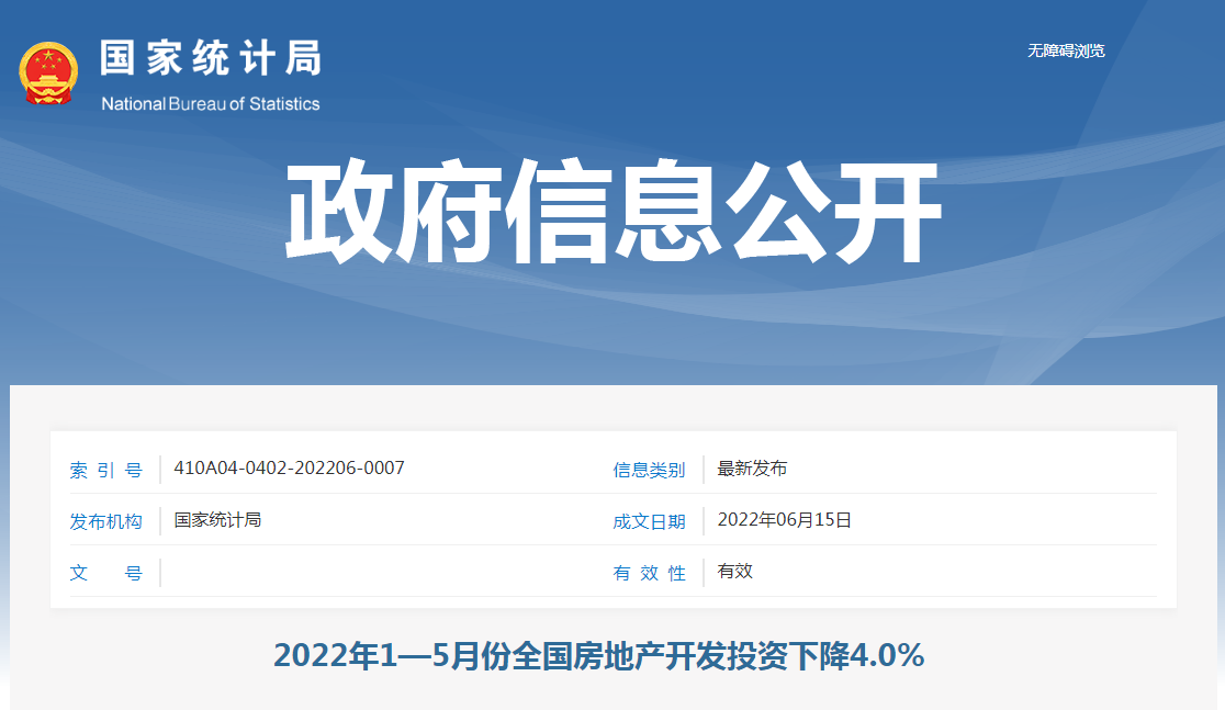 1—5月份,全國房地產開發投資52134億元,同比下降4.0%;其中,住宅投資39521億元,下降3.0%。
