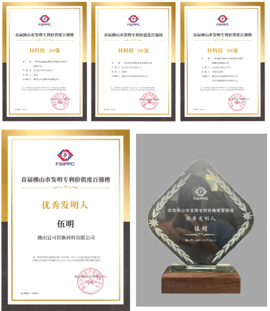 6月28日,在中國(佛山)知識產權保護中心運行四周年“益曬你”主題活動上,首屆佛山市發明專利價值度榜單正式出爐;其中,艾勒可科技憑借卓越的專業技術實力,在此次發明專利價值度評估材料組三十強中占據三個席位,分別位于于第十五位、第十八位和第二十九位;此外,艾勒可科技創始人伍明也榮獲此次材料組“優秀發明人”的稱號。