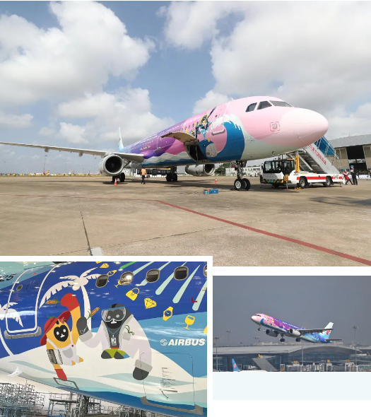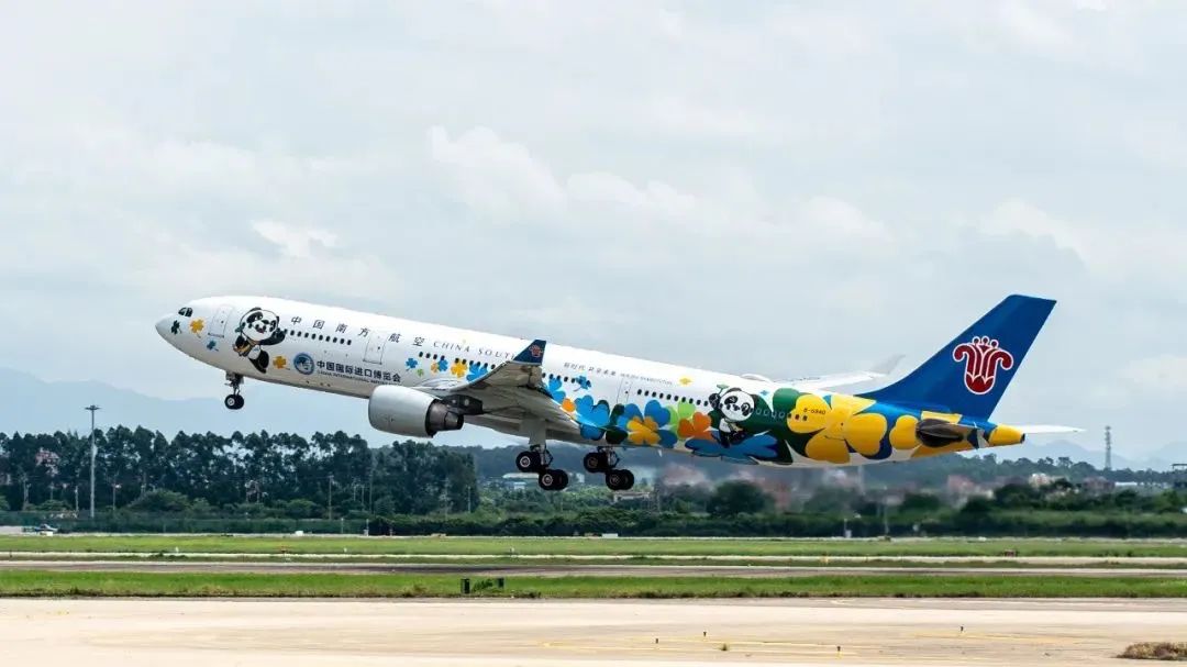 “消博號(hào)”主題彩繪飛機(jī)選用南航旗下空客A321機(jī)型,由南航集團(tuán)與海南國際經(jīng)濟(jì)發(fā)展局合作推出。它的機(jī)身以70多種斑斕色彩描繪著在吉祥物們?cè)凇澳戏薄⑸詈!⒑教臁眻?chǎng)景下的靈動(dòng)畫面,寓意著消博會(huì)熱情迎接全球企業(yè)和消費(fèi)者的到來。