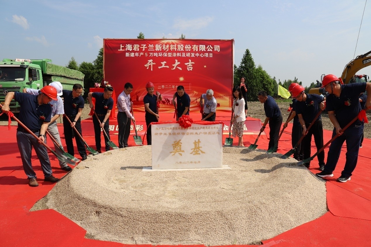 7月27日上午,上海君子蘭新材料股份有限公司新建環保涂料研發生產基地開工奠基儀式在上海市青浦區成功舉行。君子蘭董事長馬慧峰、青浦工業園區黨委副書記、總經理曹林云、黨委委員、副總經理沈豪、君子蘭副總經理兼營銷中心總監王海軍等集團高層領導、廣東政和工程有限公司總經理王芳、上海青園建設集團有限公司總經理費峰等有關領導共同見證奠基典禮這一重要時刻。