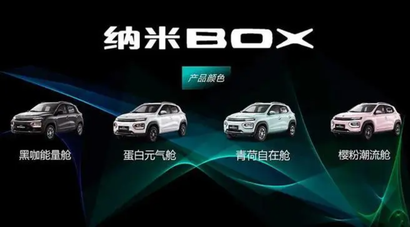 從外觀上看,納米BOX整車設計風格極具科技感和萌趣感,非常符合年輕人的喜好。發布會共推出黑色、白色、青色、粉色四款顏色,并且黑色、白色車身搭配深色內飾,青色、粉色車身搭配淺色內飾,多彩個性化配色結合國潮方圓美學的設計,讓納米BOX這輛小型純電SUV看起來剛柔并濟,非常時尚。