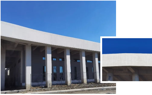 傳統清水混凝土澆筑施工后可能會出現蜂窩、麻面問題,且在雨水侵蝕后易劣化。科創藝石匠心清砼系列在既有建筑上批刮清水混凝土飾面砂漿,實現清水混凝土外觀效果,不僅具備更強的耐污性能,耐候性也更久,讓交通站房保持持久靚麗,一改過去“人多擁擠環境差”的形象,運用現代建筑風格,打造交通標志性建筑。