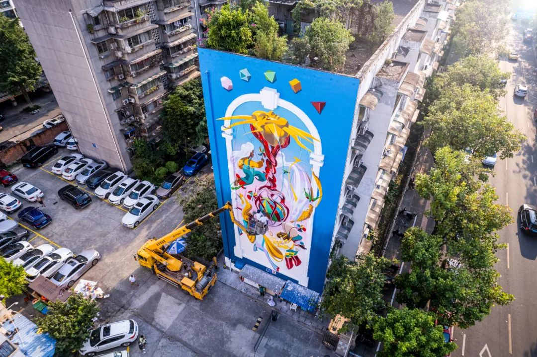 近日,由“為愛上色”公益平臺攜手藝術家陳暘(Sheep Chen,下稱“Sheep”)共同打造的首款公益數字藏品《宇宙八音盒》落地成都。作為今年“為愛上色”ART+項目的第一面城市高墻彩繪,此次公益數字藏品的創作,不僅是“為愛上色”項目在公益道路上的創新突破,更打破了現實與虛擬的壁壘,將畫稿“搬到”成都武侯區桐梓林社區的墻面上,呼吁更多人關注兒童關懷與動物保護,傳遞更多愛、色彩與歡樂。