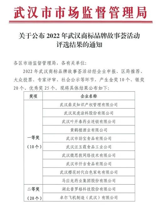 為大力推進(jìn)知識產(chǎn)權(quán)強(qiáng)市建設(shè),傳播武漢商標(biāo)品牌好故事、好聲音,提升武漢商標(biāo)品牌知名度和影響力,助推全市高質(zhì)量發(fā)展,由市區(qū)市場監(jiān)督管理局組織開展的“武漢商標(biāo)品牌故事薈”活動于2022年4月開始舉行,全市各界經(jīng)企業(yè)申報(bào)、區(qū)局推薦、大眾投票、專家評審、社會公示等環(huán)節(jié),至2022年9月產(chǎn)生金獎10個(gè)、銀獎20個(gè)、優(yōu)秀獎25個(gè),武漢雙虎涂料股份有限公司榮獲金獎。