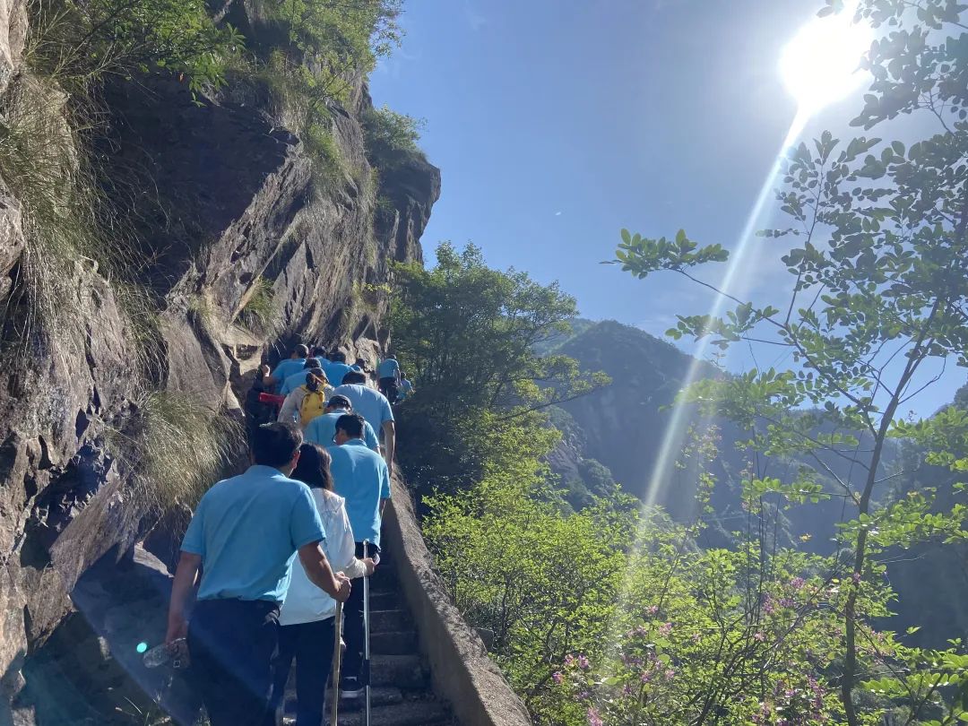 績溪是一片古老的土地,也是一片紅色的熱土。9月25日,安徽硅寶一行以小組為單位,走進擁有“江南第一關”之稱的徽杭古道,重走紅色之路,賡續紅色血脈。徽杭古道因地勢險要,山路崎嶇,自古就是兵家必爭之地,更是一處革命勝地。歷史上徽杭古道除了做為徽商與浙商交流貿易的重要通道,也是當年紅軍北上抗擊日寇的重要節點。艷陽高照,天氣炎熱,山路崎嶇蜿蜒曲折,在二十公里長達四小時的徒步過程中,大家互相幫助、互相鼓勵,穿密林、越陡坡,沒有一人選擇放棄,堅持就是勝利的口號響徹在山林之間,大家置身其中,仿佛回到了那戰火紛飛的年代,眼前浮現出革命先烈不畏艱難肯攀登的場景,每位黨員都受到了一次革命精神的洗禮。