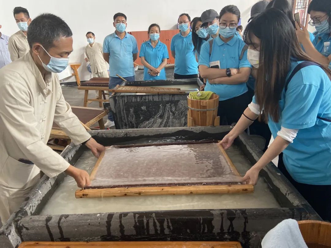 在造紙廠工作人員的帶領下,黨員們也積極參與了宣紙的各項制造流程,并在工作人員指導下按照傳統工藝從原材料手工制作出了宣紙,大家深深感受到宣紙文化的魅力以及勞動人民的無窮智慧和中華文化的博大精深。
